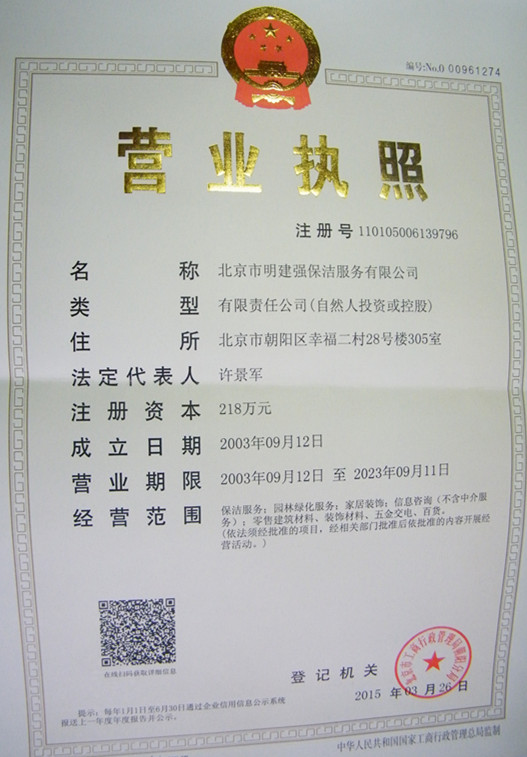 公司名稱(chēng):北京市明建強(qiáng)保潔服務(wù)有限公司